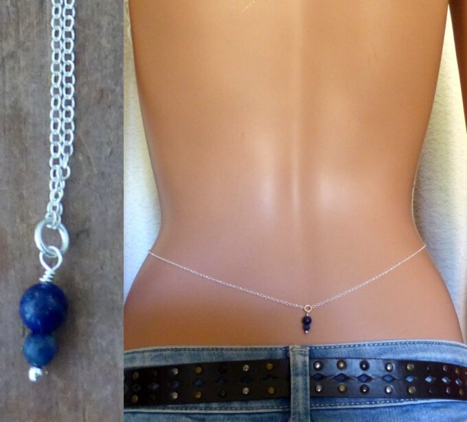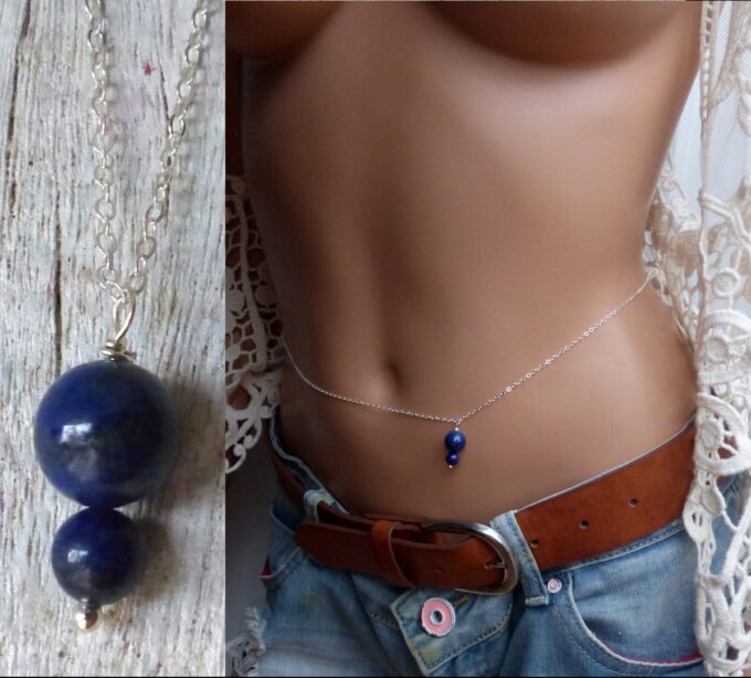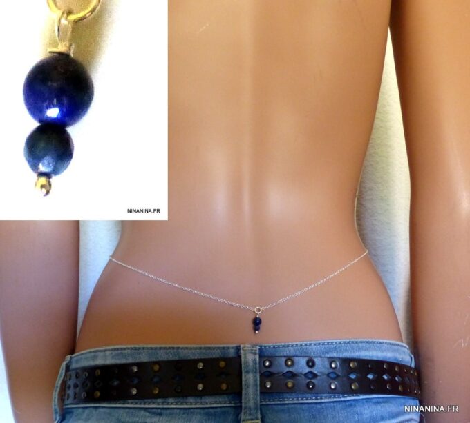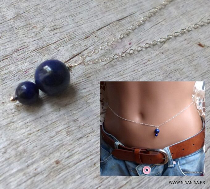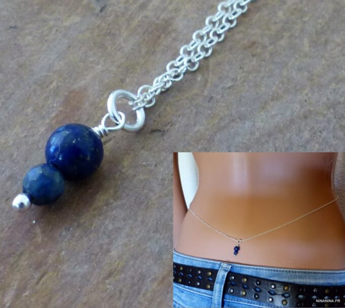 Ajoutez une touche de sensualité à n’importe quelle tenue avec cette Chaine de taille Argent 925 pendentif lapis lazuli constituée de deux perles en lapis lazuli véritable montées sur une Chaîne en Argent 925 maille forçat. Cette Chaîne de taille, aussi appelée chaine de ventre ou chaine de hanches, est terminée par un délicat fermoir mousqueton, sûr et facile d’utilisation.