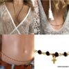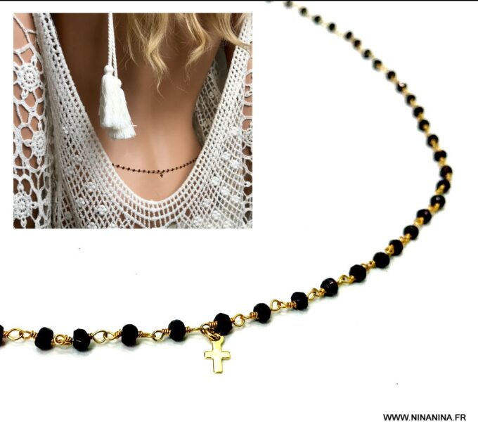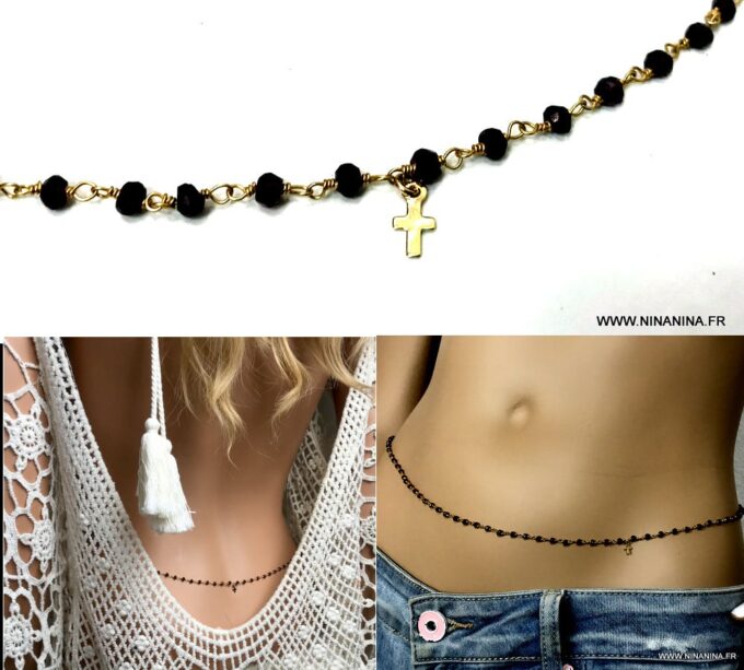 Vous allez craquer à coup sûr pour cette Chaine de taille en pierre de spinelle noir croix plaqué or ! Cette Chaîne de ventre, aussi appelée chaine de hanches ou collier de taille, constituée d’une petite croix en Plaqué Or montée sur un chapelet de perles en spinelle noir sur fil Plaqué Or. Un fermoir rond à ressort sûr et facile d’utilisation vient magnifier le tout.