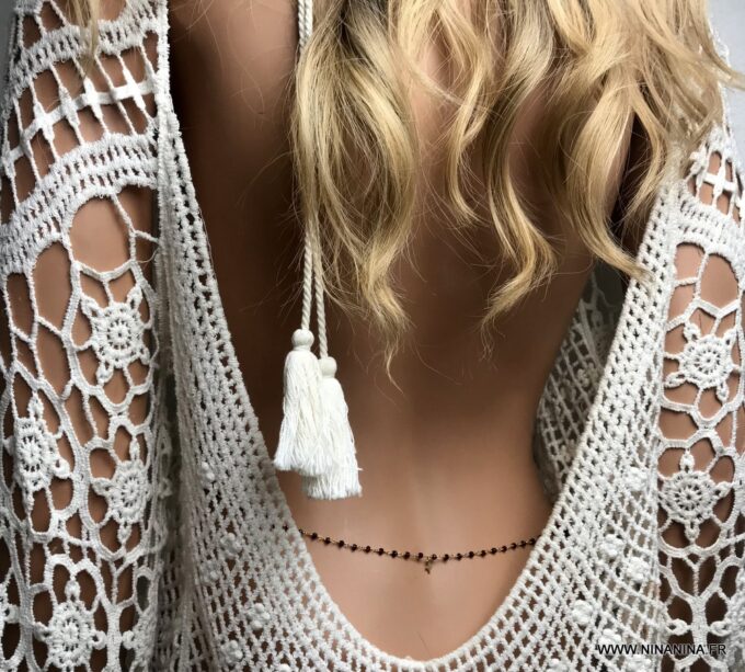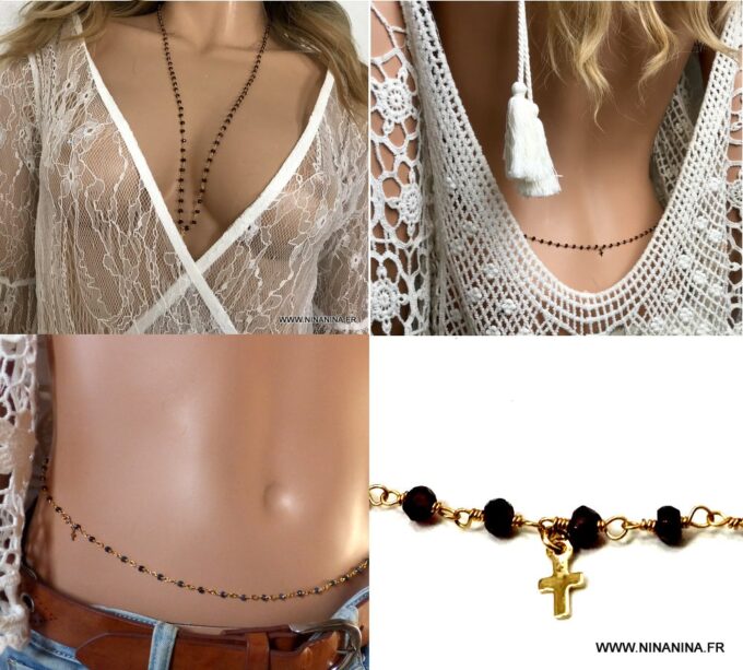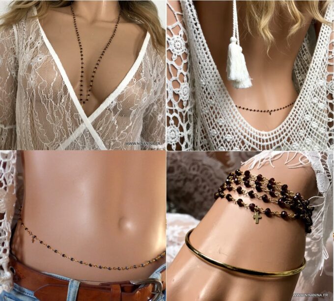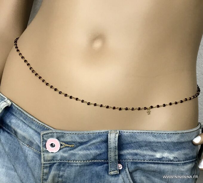 Ce magnifique bijou de grande qualité est unique et fabriqué à la main, de façon artisanale et en série limitée dans notre atelier du sud de la France. Il s’agit d’un Bijou fait sur mesure et pour éviter tout souci de taille, merci de mesurer la zone en dessous de votre nombril ou celle sur laquelle vous souhaitez poser la chaîne. Sélectionnez ensuite la longueur de votre chaîne dans le menu déroulant : 80 cm env (tailles 36 à 38) – 90 cm env (tailles 40 à 42) ou 100 cm env (tailles 44 à 46) ou ou indiquez en commentaire une longueur intermédiaire.
