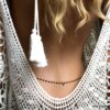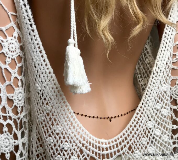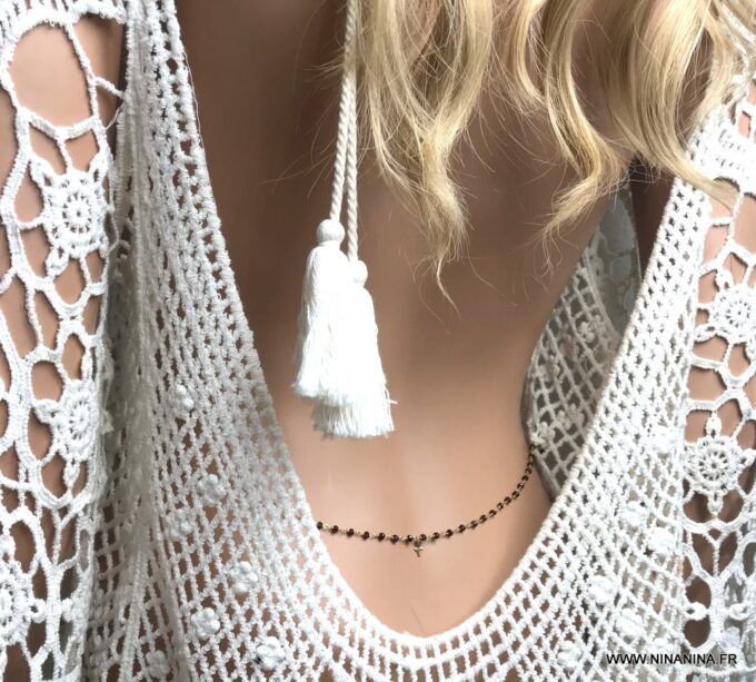Astuce Ninanina : Vous pouvez également l’enrouler plusieurs fois autour de votre poignet et le transformer ainsi en bracelet collier ultra tendance ! Accrochée à votre cou, elle deviendra un sautoir noir et plaqué or ultra sexy (1 seul tour) ou court (2 tours) ! Un bijou aussi unique que vous l’êtes dont vous ne pourrez plus vous passer !