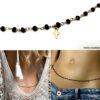 Mariage réussi du plaqué or et de pierres précieuses noires et résultat magnifique pour ce magnifique Bijou de corps avec un subtil et sublime mélange de l’éclat de l’or et du noir profond du spinelle! Offert à la femme de votre vie, cette chaine de taille noir représentera l’amour qui vous lie l’un à l’autre.