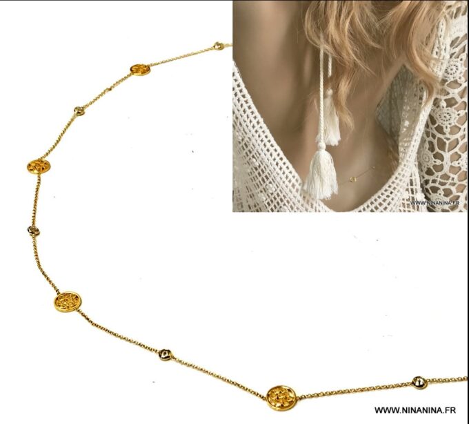 Astuce Ninanina : Vous pouvez également la mettre autour de votre cou et elle deviendra un collier long ou encore l’enrouler plusieurs fois autour de votre poignet et la transformer ainsi en collier bracelet ultra tendance ! Un bijou multifonctions, aussi unique que vous et dont vous ne pourrez plus vous passer !