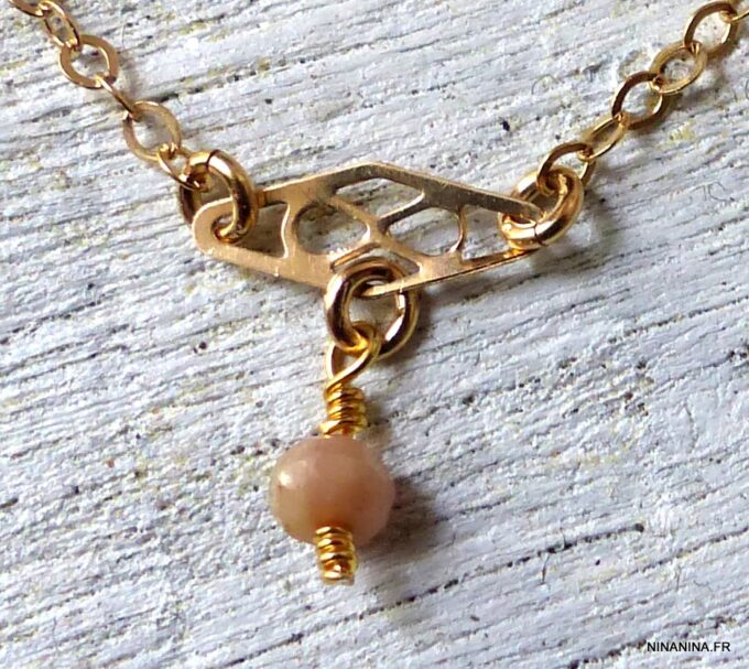 Chaine de taille Plaqué Or losange Et pierre Opale Rose