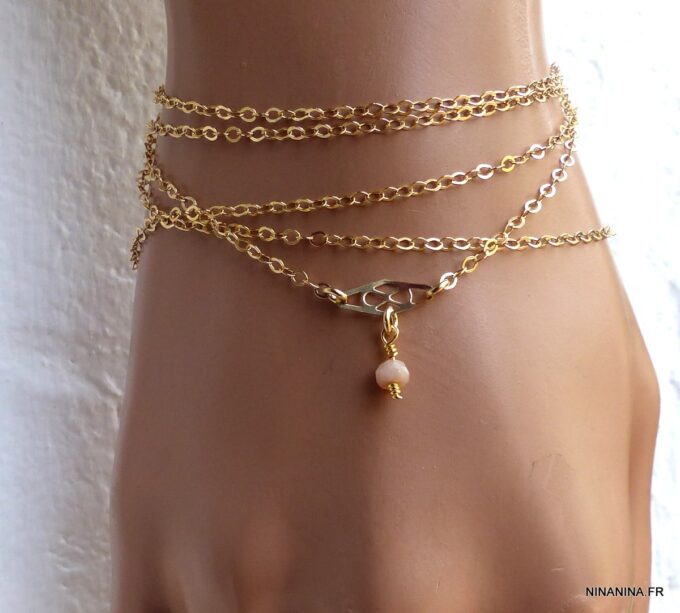 Profitez de l’été avec cette belle Chaine de taille Plaqué Or losange que vous pourrez porter sur votre maillot de bain ou sous un Jean et bénéficiez des vertus de sa petite pierre en Opale rose. L’Opale rose est une belle pierre pour la guérison des émotions, surtout celles liées à une douleur inconsciemment conservée. Cette pierre stimule la réflexion et apaise la colère. L’Opale est la pierre de naissance des natifs du mois d’octobre. Les noces d’Opale célèbrent le vingt-et-unième anniversaire de Mariage.  L’Opale rose est une belle pierre pour la guérison des émotions, surtout celles liées à une douleur inconsciemment conservée. Cette pierre stimule la réflexion et apaise la colère. L’Opale est la pierre de naissance des natifs du mois d’octobre.