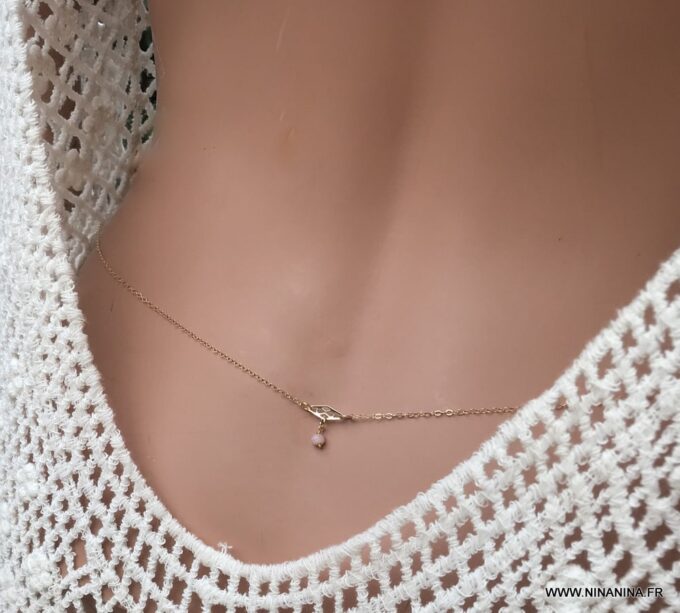 Porte bonheur, talisman, amulette de protection, ce bijou pierre de naissance en plaqué or original et somptueux, est le cadeau idéal pour les natifs du mois de février car l’opale rose est leur Pierre de Naissance. Retrouvez ici les autres Bijoux opale  Ninanina qui viendront parfaire votre look !