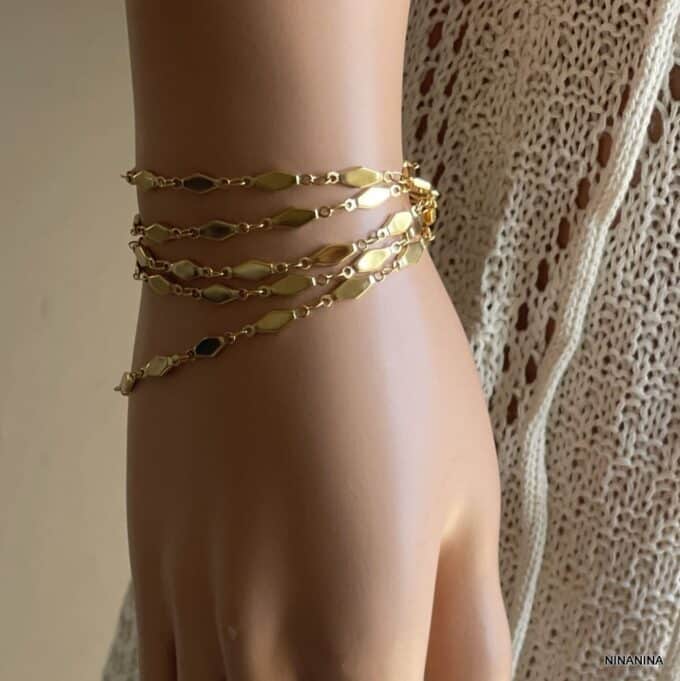 Astuce Ninanina : Vous pouvez également la mettre autour de votre cou et elle deviendra un collier long ou court (2 tours) ou encore l’enrouler plusieurs fois autour de votre poignet et la transformer ainsi en bracelet collier ultra tendance ! Un bijou aussi unique que vous l’êtes !