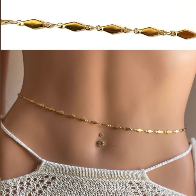 Laissez-vous séduire par cette magnifique Chaine De Tour De Taille Or Losange Acier Inox Doré sensuelle et raffinée et ses maillons en forme de losange en acier inoxydable doré!