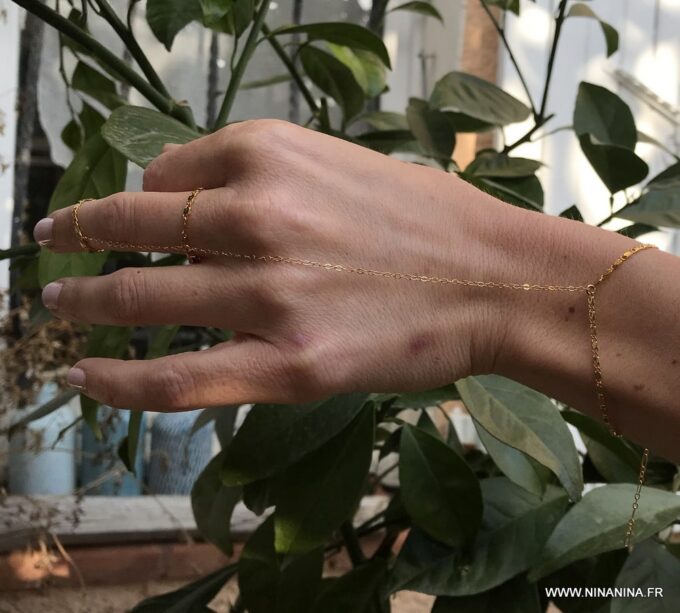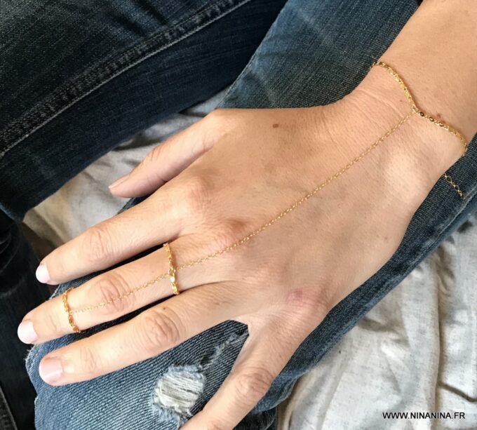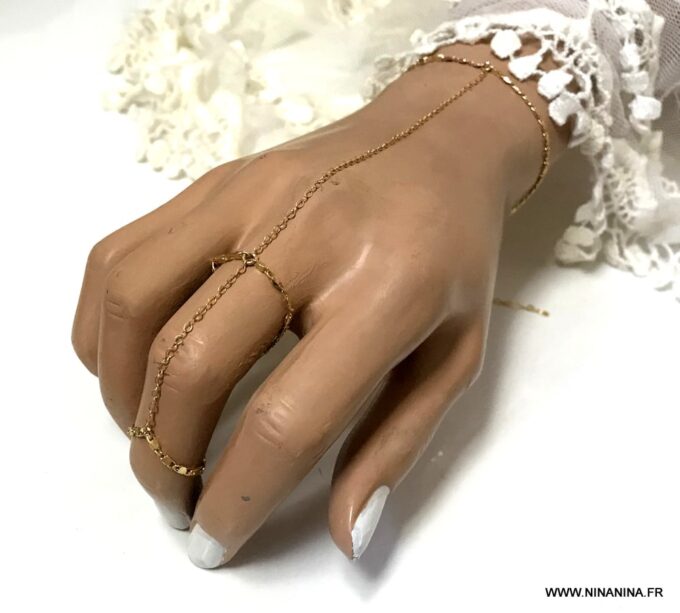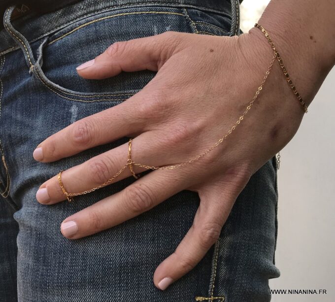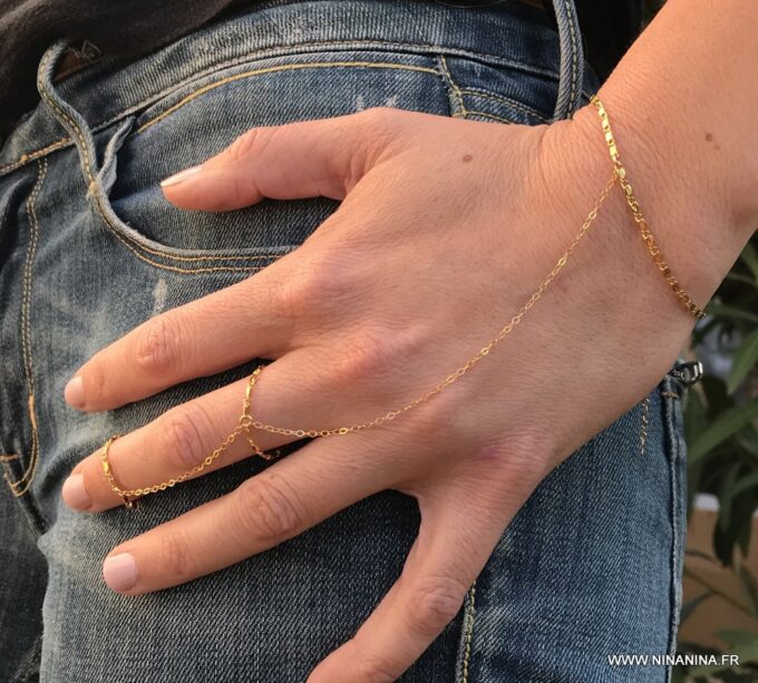 Cette jolie Chaine doigt main appelée également Bracelet bague ou chaine de main ou bien encore bracelet de doigt, est un bijou peu commun, qui est très tendance et est devenu un incontournable de la mode depuis quelques mois!