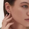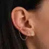 Mettez la boucle au niveau du lobe (grâce à son système fermoir poussette) et placez ensuite le ear cuff en haut de l’oreille. Ce bijou d’oreille relie donc une manchette d’oreille par une chaine et vous donnera un look gipsy bohème.