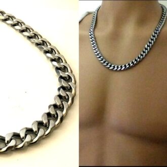 - 55 cm : on trouve rarement de chaînes plus longues pour un homme. Elle s’arrête juste au-dessous des clavicules.