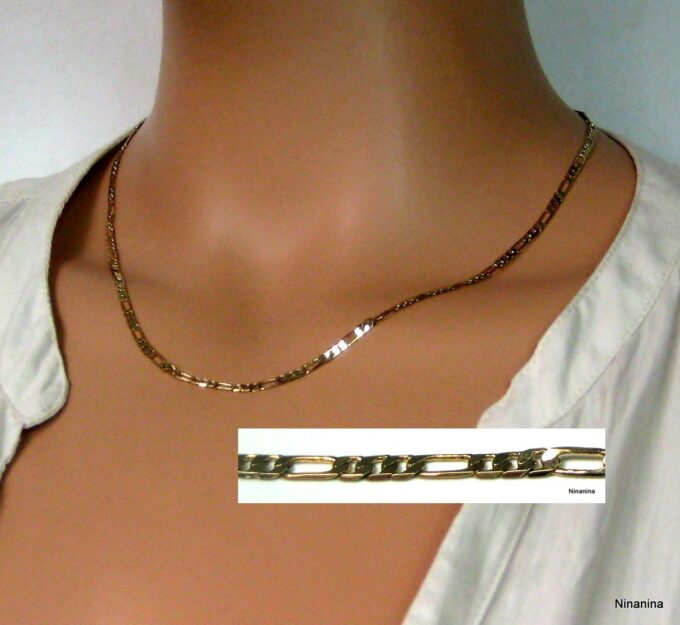 Une Chaine femme en plaqué est l’accessoire incontournable d’une tenue qui se respecte ! Car comment concevoir un look sans lui apporter un bijou qui dégage un peu de votre personnalité. La chaîne apporte une touche élégante sans trop « charger ». Intemporelle, elle vous suit où que vous soyez ! Découvrez cette chaîne robuste et indémodable et sa maille figaro délicate! Alors n’hésitez plus cette Chaine Plaqué Or femme et homme maille figaro est celle qu’il vous faut !