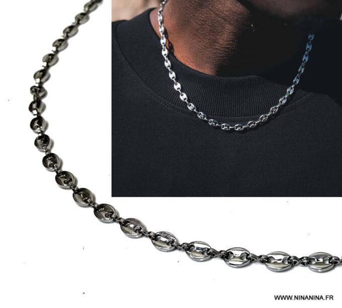 Les chaînes grain de café sont très à la mode ces derniers temps. Ces chaînes n’ont aucune signification particulière et l’origine de leur nom vient de la forme des maillons qui rappelle évidemment la forme d’un grain de café.