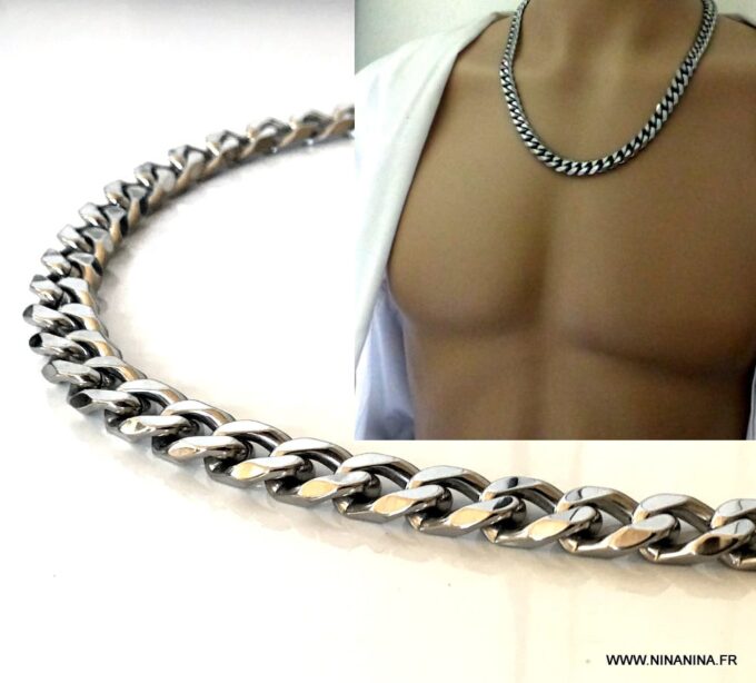 Envie de vous offrir une Chaîne sobre, basique et robuste, cette Chaine homme Acier inoxydable argent maille gourmette soutiendra de la manière la plus sure tous vos pendentifs et médaillons, même les plus lourds! Si vous cherchez une chaîne solide, sans fioriture et à petit prix, ne cherchez plus vous la tenez!