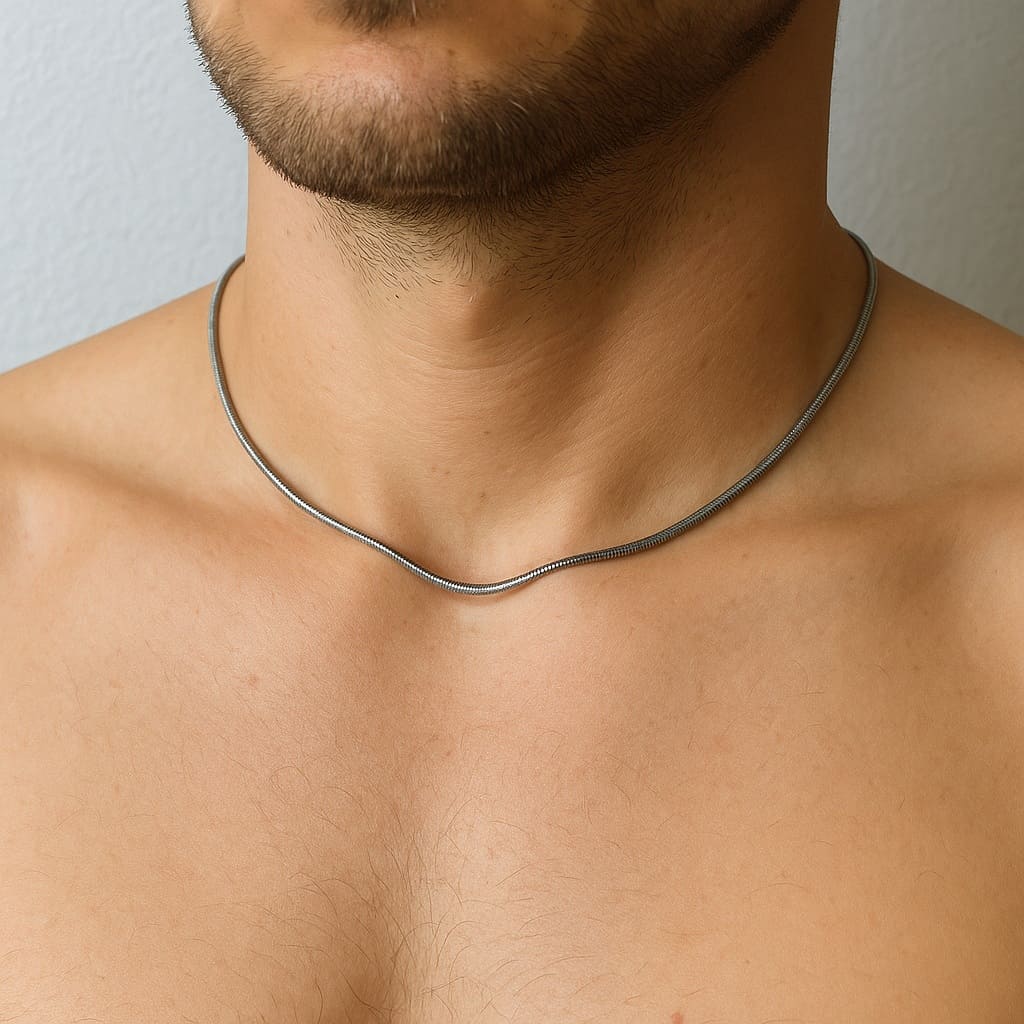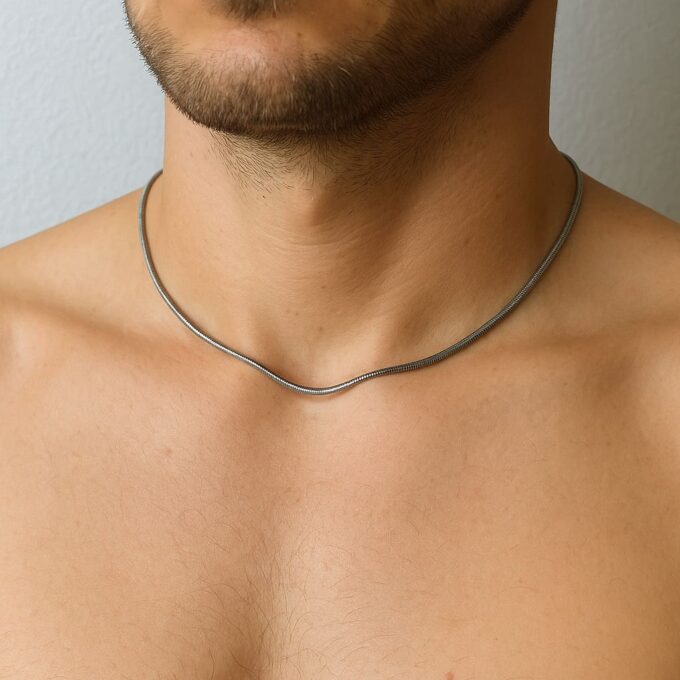 Le collier homme maille serpent argentée est plus qu’un bijou : c’est une déclaration de style.
