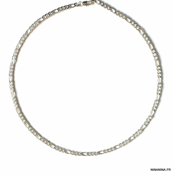 Une Chaine argent homme maille figaro 50 cm de fabrication française