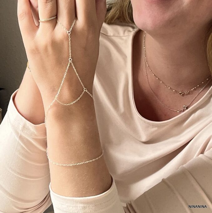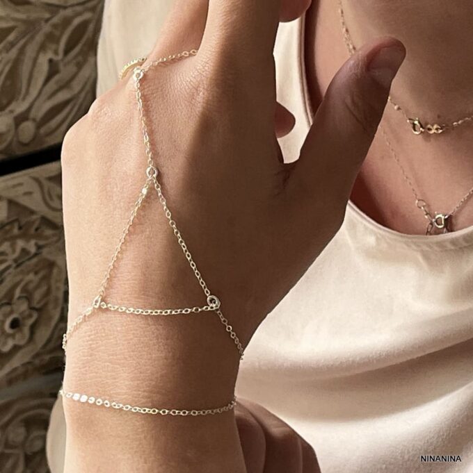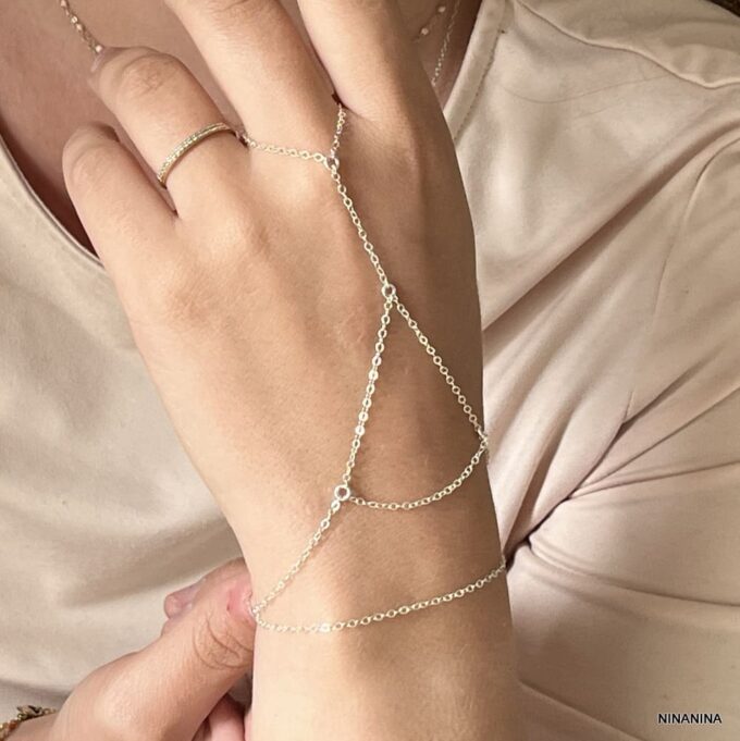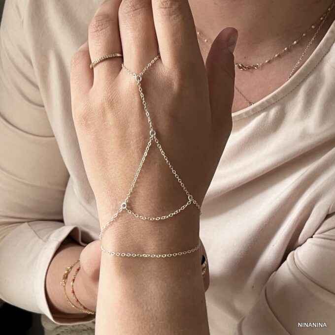 Portez ce joli Bijou de main tendance seul pour un look minimaliste ou mixé à d’autres Bracelets Ninanina.