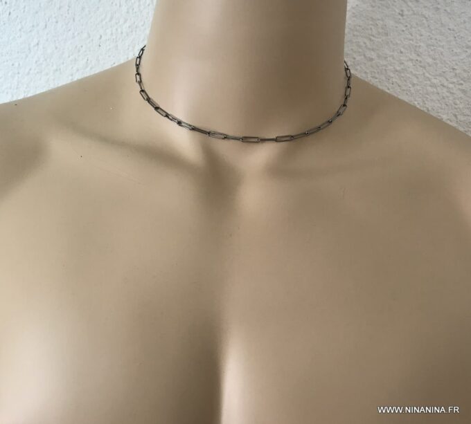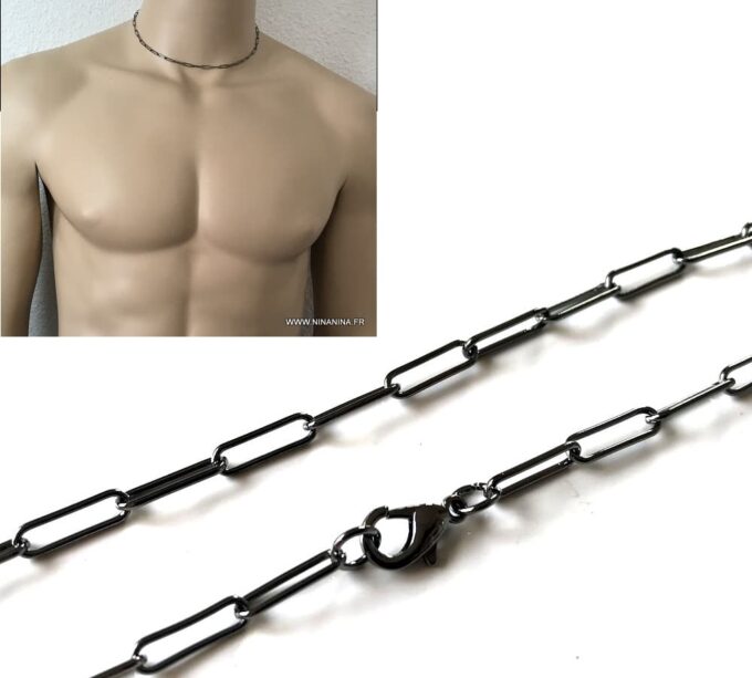 Sobre, basique et robuste, ce Collier maille trombone noir ras de cou – Chaine homme parvient à concilier robustesse, élégance et discrétion. La fameuse maille rectangle noire rappelant la forme d’un trombone pour un côté original qui ne passera pas inaperçu!