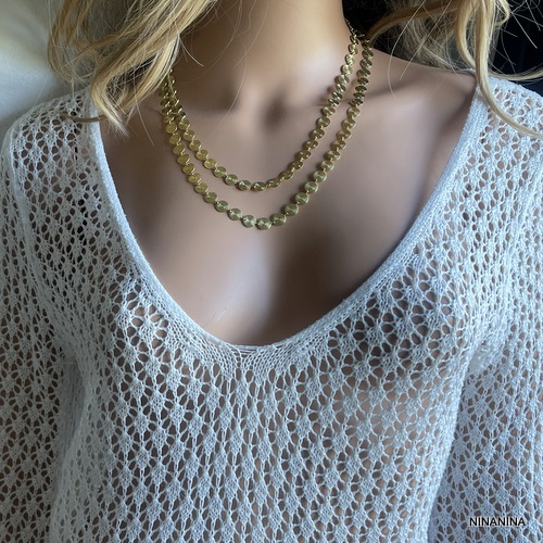Vous souhaitez modifier ou ajouter une pièce? modifier la couleur ou la matière ? Cette chaine sautoir or plaqué est faite sur mesure et comme la majorité des bijoux Ninanina, est personnalisable. Vous pouvez demander à modifier d’autres caractéristiques de ce bijou. Vous pouvez demander une longueur différente de celle proposée ou encore demander à rajouter une pierre fine pour transformer ce collier long en bijou pierre de naissance par exemple; Il vous suffit de laisser un commentaire et nous élaborerons ensemble votre nouveau bijou personnalisé.