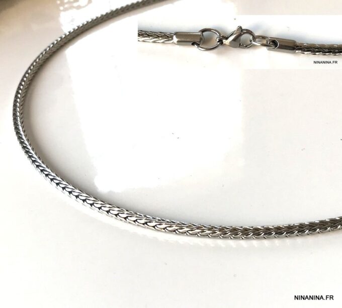 Cette chaine homme en Acier de haute qualité est fabriquée à la main, de façon artisanale et en série limitée dans notre atelier du sud de la France. Subtil alliage de plusieurs éléments (le fer, le nickel ou le chrome), l’Acier inoxydable est un matériau particulièrement prisé pour ses nombreuses vertus. Il est très solide et robuste, totalement hypoallergénique, ne rouille pas et, contrairement à l’Agent, ne s’oxyde pas.