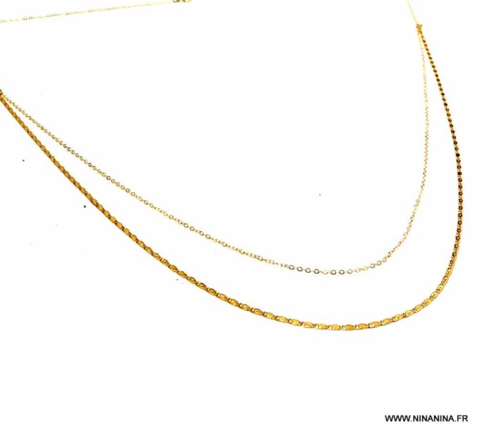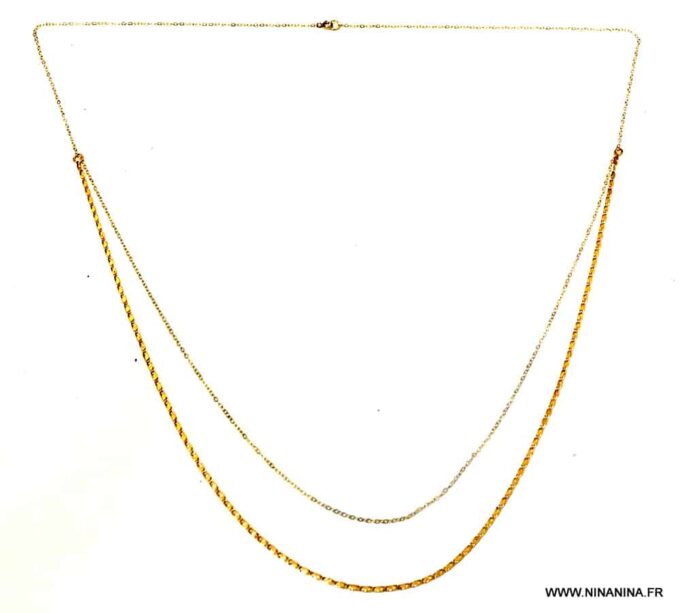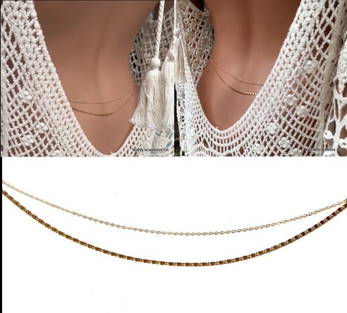 Découvrez vite cette Chaine tour de ventre plaqué or femme double rang composée d’une chaine maille fantaisie en plaqué or 9 carats et d’une chaine maille forçat en plaqué or gold filled superposées. Un splendide bijou de corps en plaqué or 14 carats gold filled maille fantaisie terminé par un délicat fermoir rond à ressort sûr et facile d’utilisation.