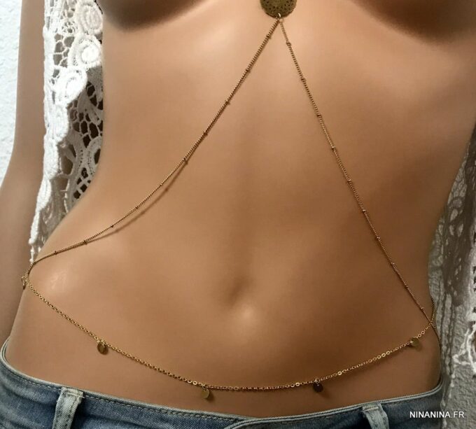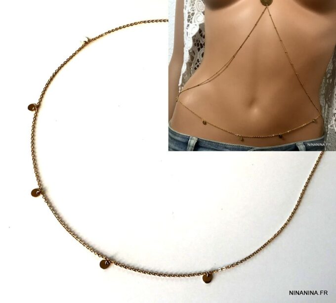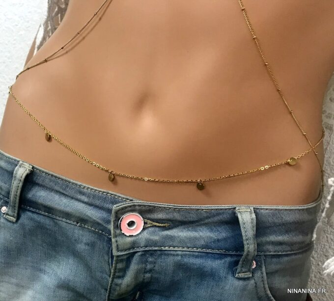 Optez sans hésiter pour cette Chainette taille breloque ronde acier doré – Chaine de ventre or sensuelle et raffinée et ses petites breloques rondes dorées montées sur une chaine en acier inoxydable doré! Mettez en valeur vos jolies formes avec ce bijou de corps terminé par un fermoir mousqueton sûr et facile d’utilisation.