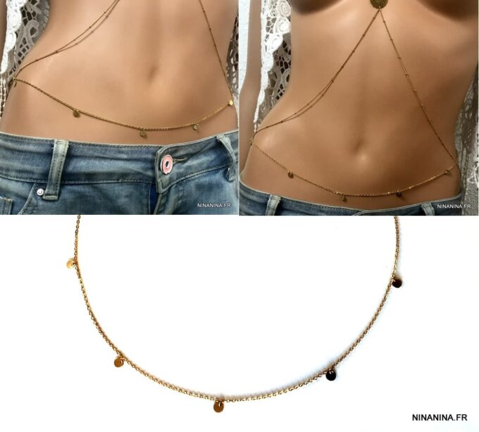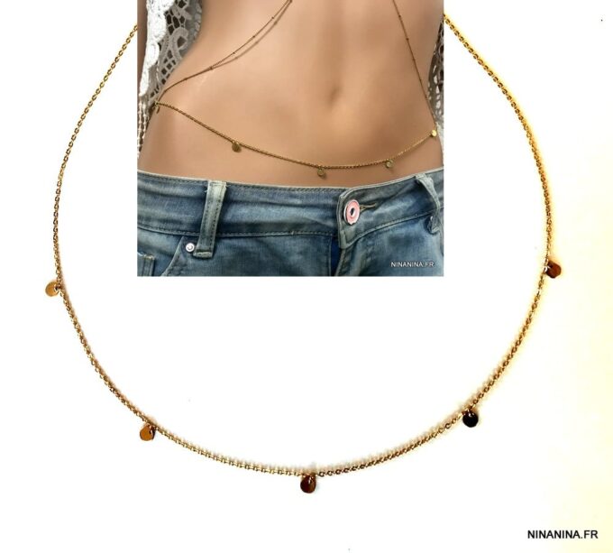 Portez ce joli bijou doré seul pour un look minimaliste ou en superposition avec d’autres bijoux de corps Ninanina; Comme Rihanna, vous pouvez mettre la chaîne de taille avec un simple top et un jean. Elle a choisi un débardeur, mais vous êtes libre de dévoiler toute autre partie de votre corps pour un effet sexy garanti !