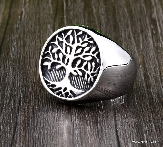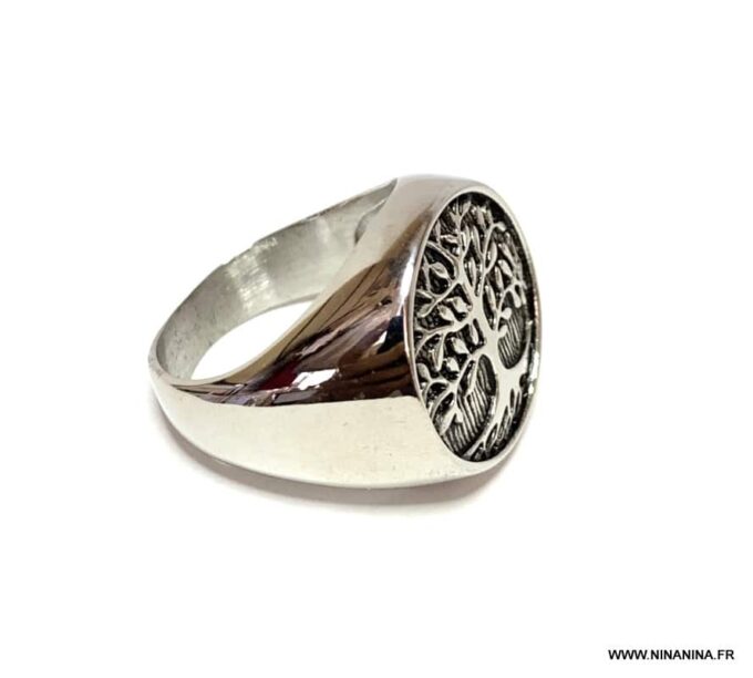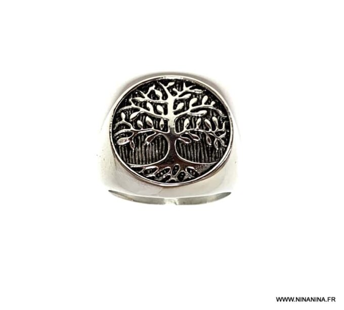 Symbole universel présent dans de nombreuses religions, l’arbre de vie est magnifiquement représenté sur cette Chevaliere homme arbre de vie acier inoxydable argent.