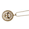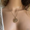 Le travail de relief du disque et le sertissage délicat des pierres donnent à ce collier une allure précieuse, sans compromis sur la solidité.
