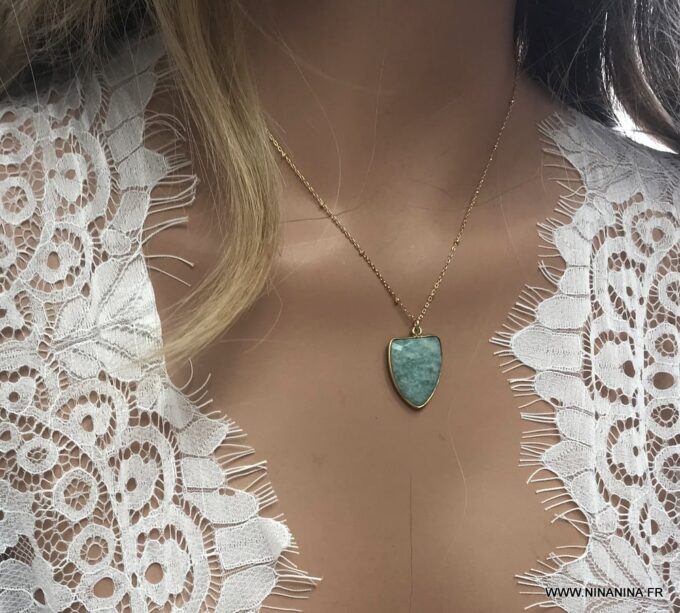 Collier Amazonite pendentif bleu argent plaqué or femme