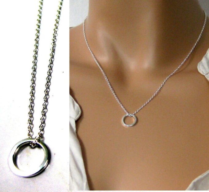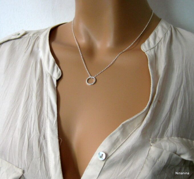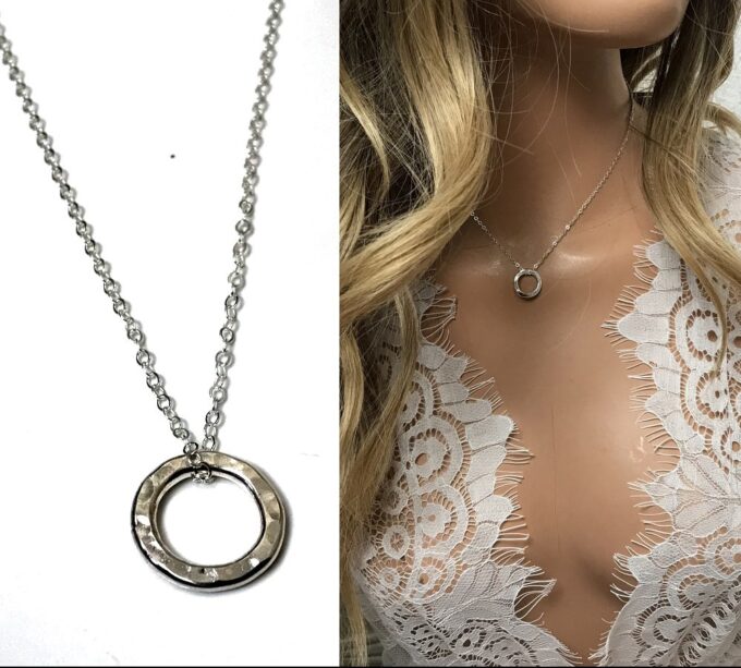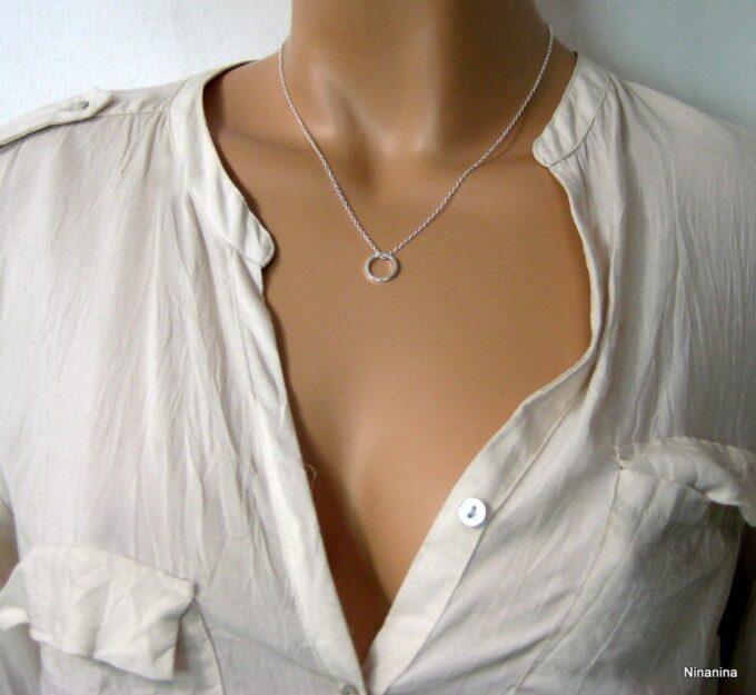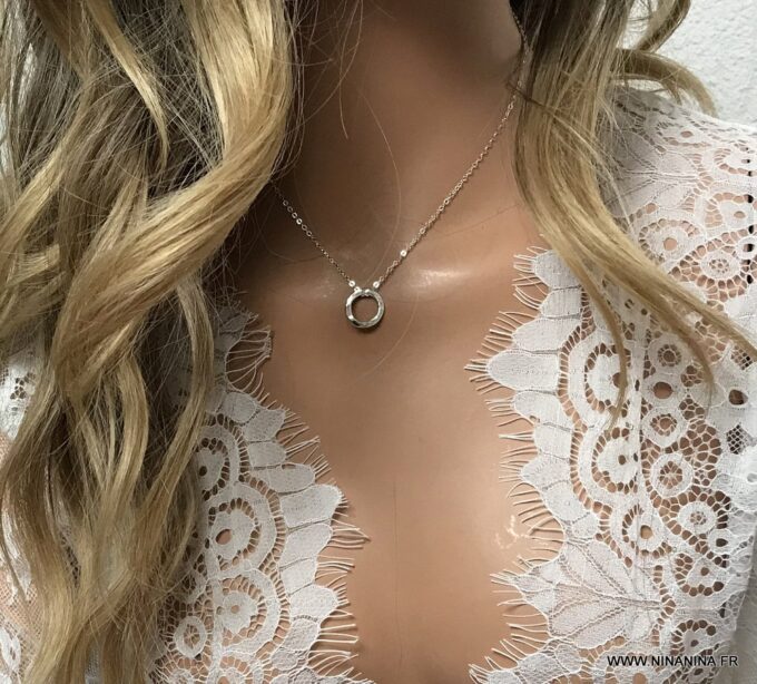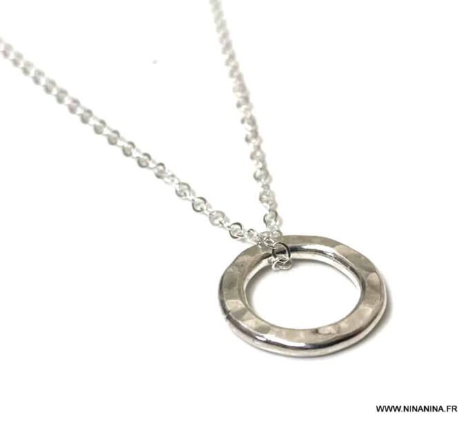 Délicatesse, finesse et volupté vous habilleront avec ce Collier anneau Argent 925 massif martelé pour femme composé d’un anneau en argent 925 martelé monté sur une Chaîne en Argent 925 maille forçat. Ce collier cercle argent 925 est terminé par un délicat fermoir mousqueton en argent 925, sûr et facile d’utilisation. Tout simplement exquis!