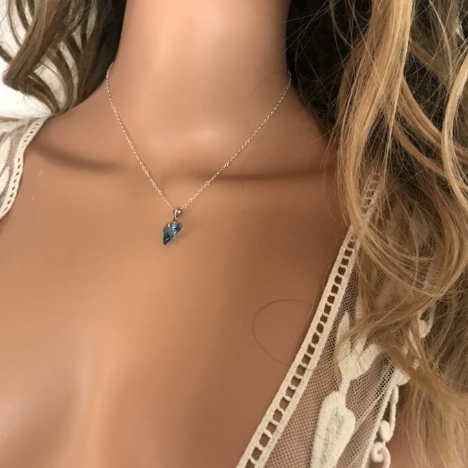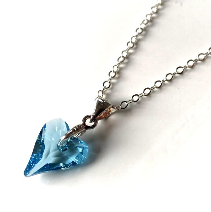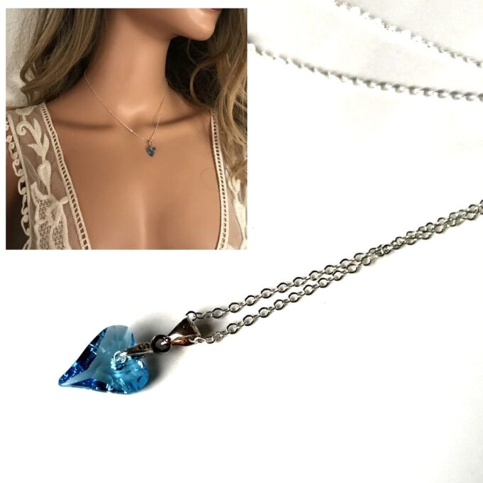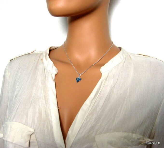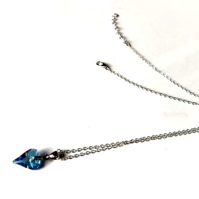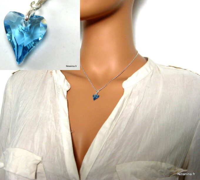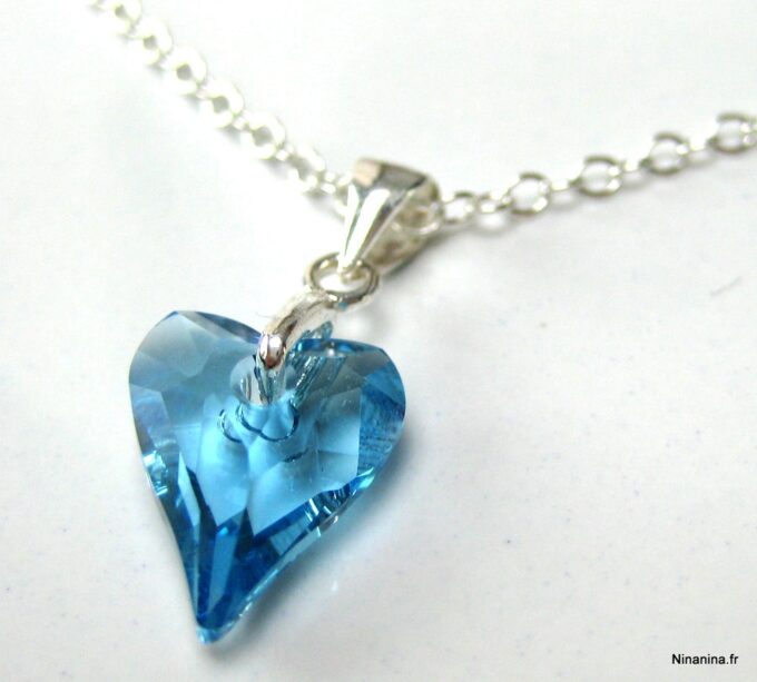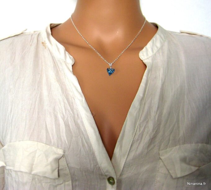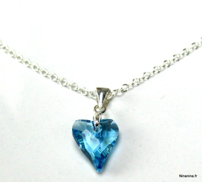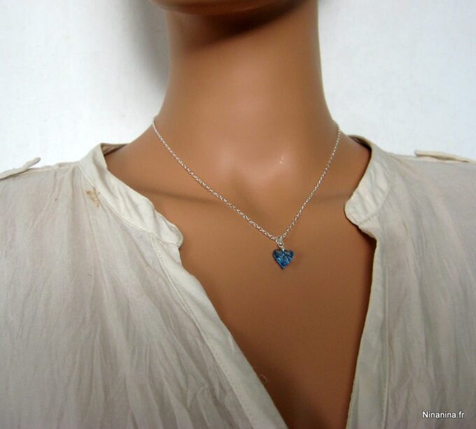 Collier Swarovski coeur cristal bleu Argent 925 massif composée d’un pendentif coeur en cristal swarovski turquoise monté sur une chaînette en argent 925.