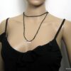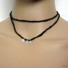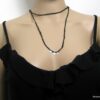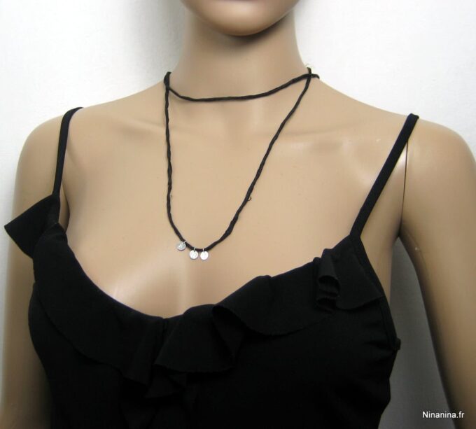 Collier argent massif personnalisé composé de pastilles gravées en argent 925 montées sur un cordon en soie noir (2mm de diamètre) et fermé par une perle en argent 925. A personnaliser avec les lettres de votre choix (à indiquer en commentaire). Diamètre des pastilles : 0,6 cm. Longueur (fermoir compris) : 110 cm. Livré dans sa pochette d’organza. Bijou 100% fait-main. Poids : 1 g