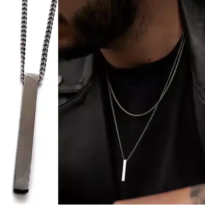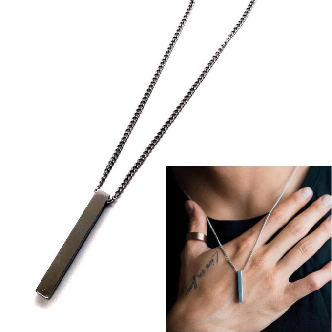 Découvrez sans plus tarder ce Collier barre verticale acier inoxydable argenté ! Il est composé d’un pendentif fin et rectangulaire en Acier inoxydable monté sur une chaine maille gourmette en Acier chirurgical. Un collier pour hommes au design aussi sobre qu’élégant. Il se termine par un fermoir mousqueton en acier inoxydable, sûr et facile d’utilisation.