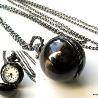 Collier boule montre gousset métal bronze composé d’une montre gousset ronde en métal bronze montée sur une chainette en métal bronze.