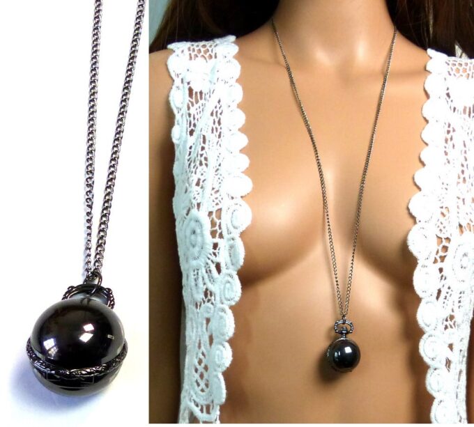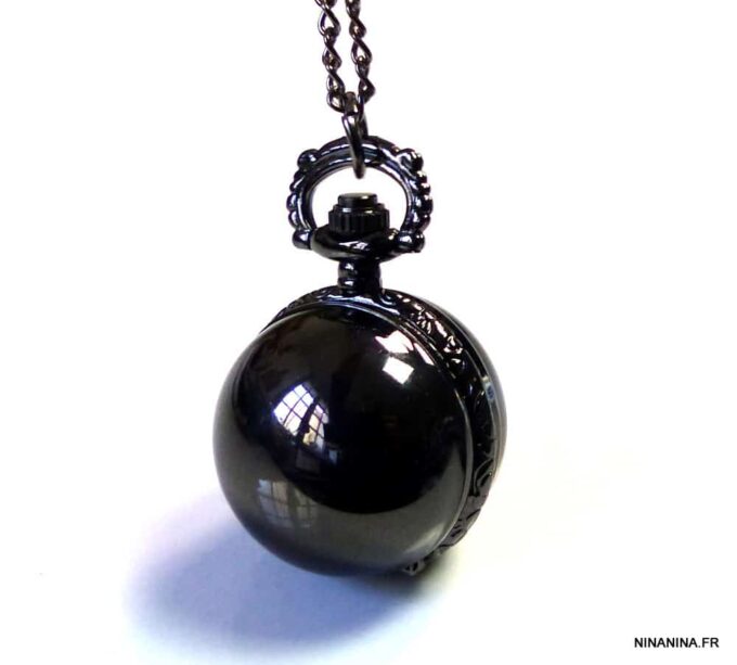 Vous serez charmé par l’élégance de ce Collier montre femme métal noir composé d’un pendentif montre de poche retro en métal noir monté sur une chaine maille forçat en métal noir qui apportera à votre style et votre tenue une certaine assurance ! Le collier montre est terminé par un fermoir mousqueton sûr et très facile d’utilisation.
