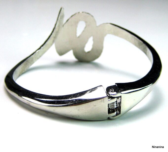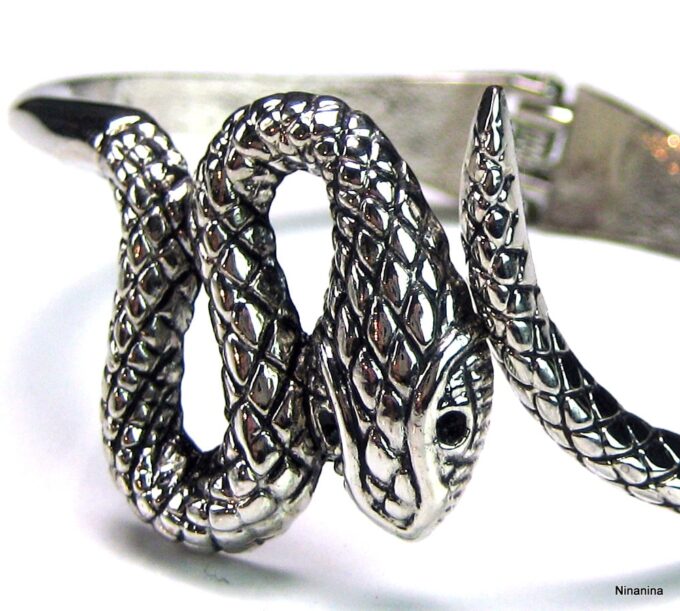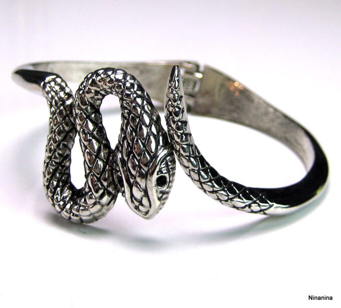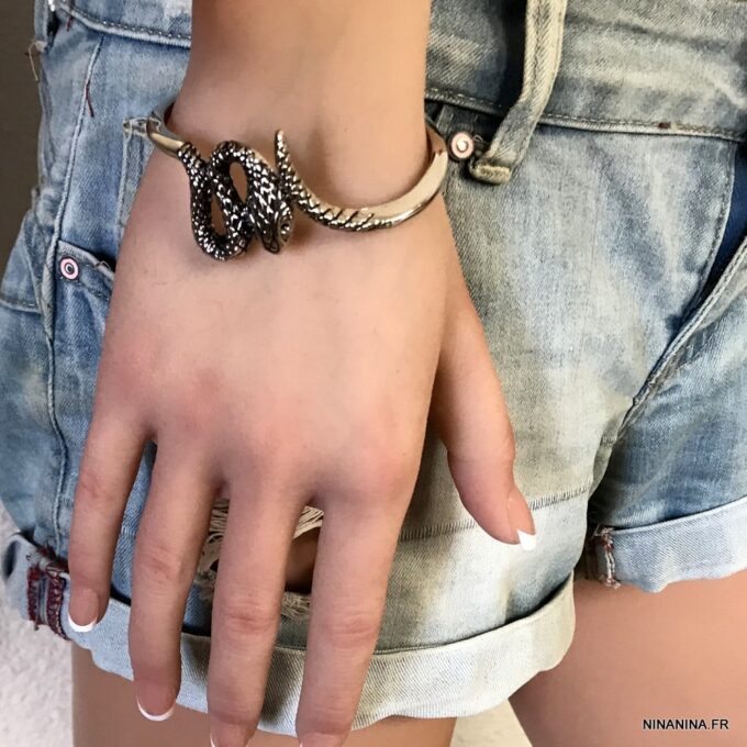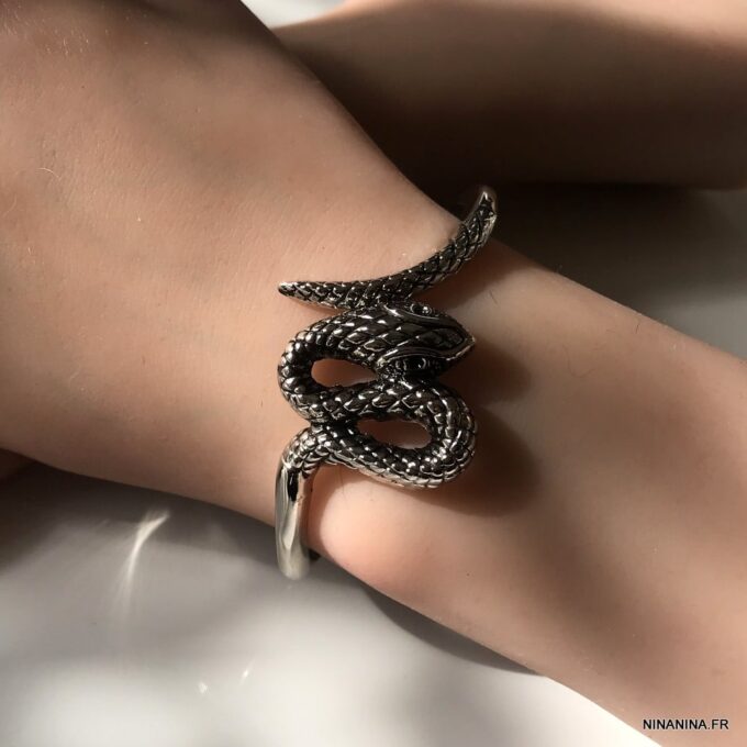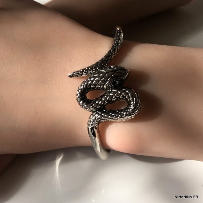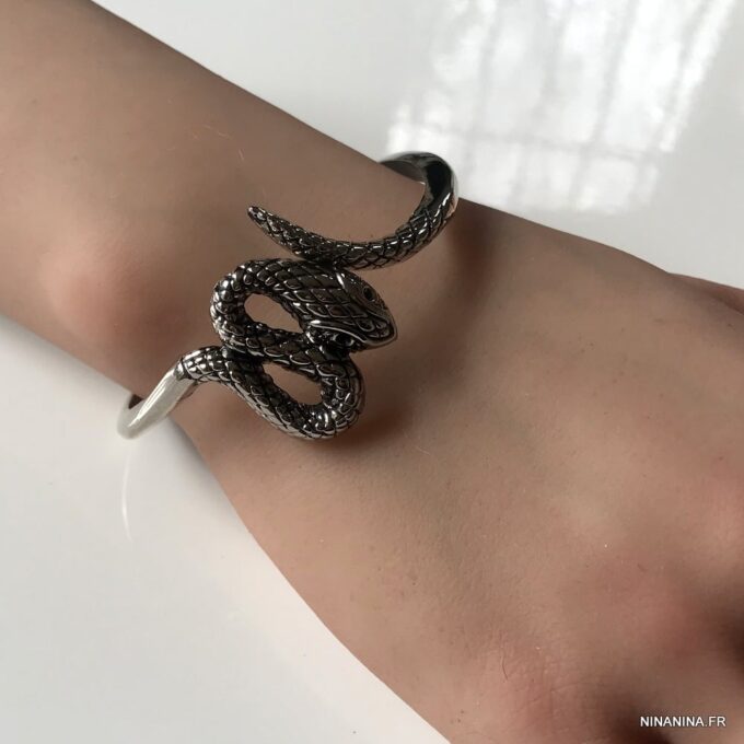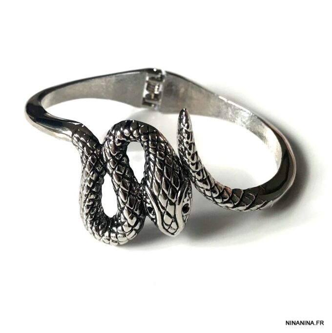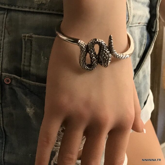 Jonc serpent femme métal argenté – Bracelet ouvert.