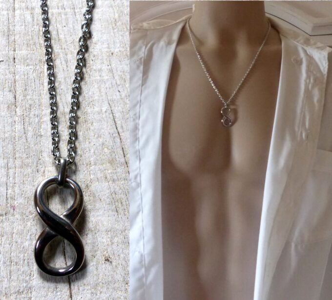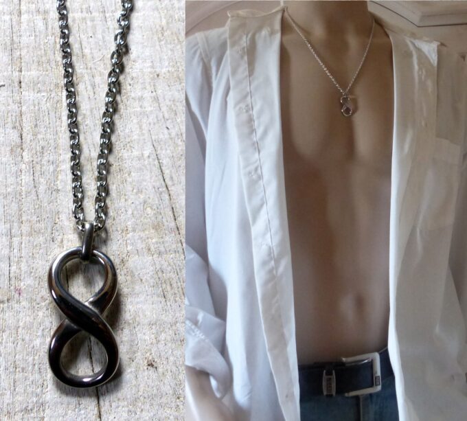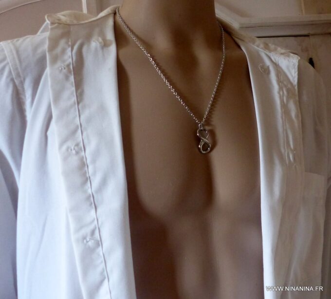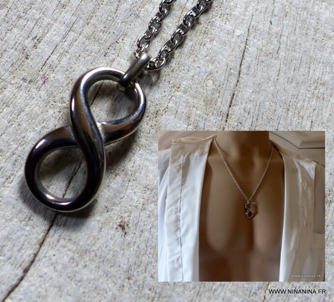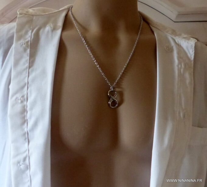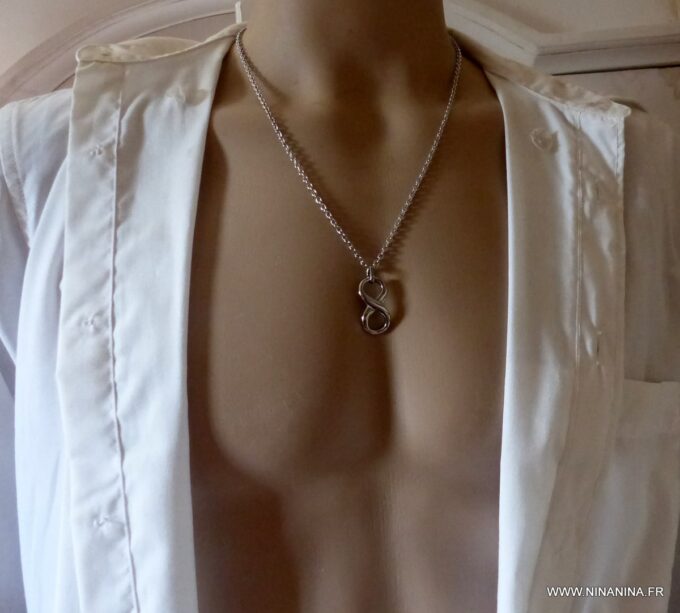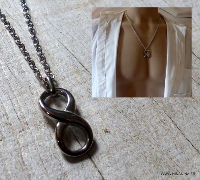 Ce Collier infini en acier chirurgical et son pendentif infini en acier saura véhiculer son message d’amour universel au cou de votre bien aimé!. Tout un symbole pour un bijou sobre, raffiné et élégant à offrir à la St Valentin ! Porté seul, ou accompagné d’autres colliers homme Ninanina, il ne quittera plus son heureux destinataire!