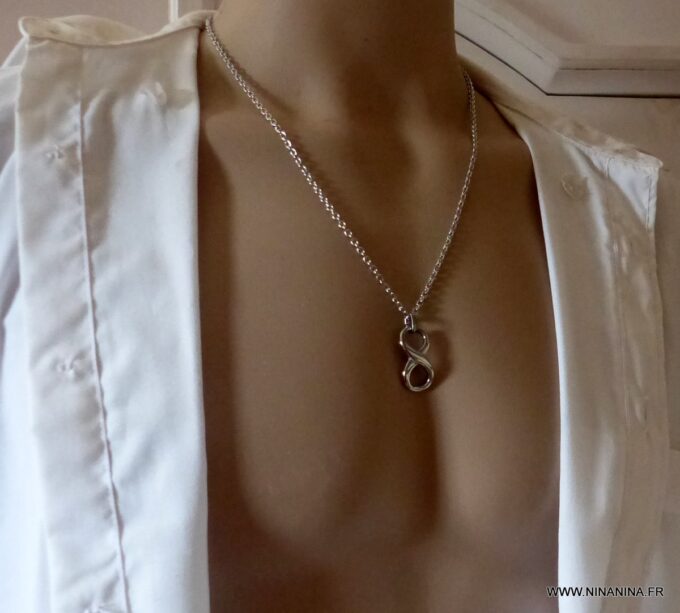 Original, fin et masculin ce Collier homme infini pendentif Acier inoxydable argenté est composé d’un d’un pendentif infini en acier inoxydable monté sur une chaine en acier arhenté maille forçat et terminé par un fermoir mousqueton, sûr et facile d’utilisation.