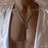Ce collier chaine homme en Acier inoxydable argenté de haute qualité est fabriqué à la main, de façon artisanale et en série limitée dans notre atelier du sud de la France. Subtil alliage de plusieurs éléments (le fer, le nickel ou le chrome), l’Acier inoxydable est un matériau particulièrement prisé pour ses nombreuses vertus. Il est très solide et robuste, totalement hypoallergénique, ne rouille pas et, contrairement à l’Agent, ne s’oxyde pas. Dim du pendentif : 1,5 X 3 cm. Longueur : 45, 60 ou 80 cm à choisir dans le menu déroulant.