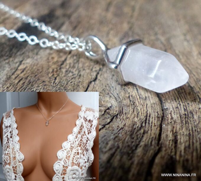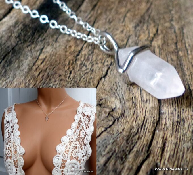 Soyez le premier à laisser votre avis sur “Collier chaine pendentif en pointe quartz rose argent”