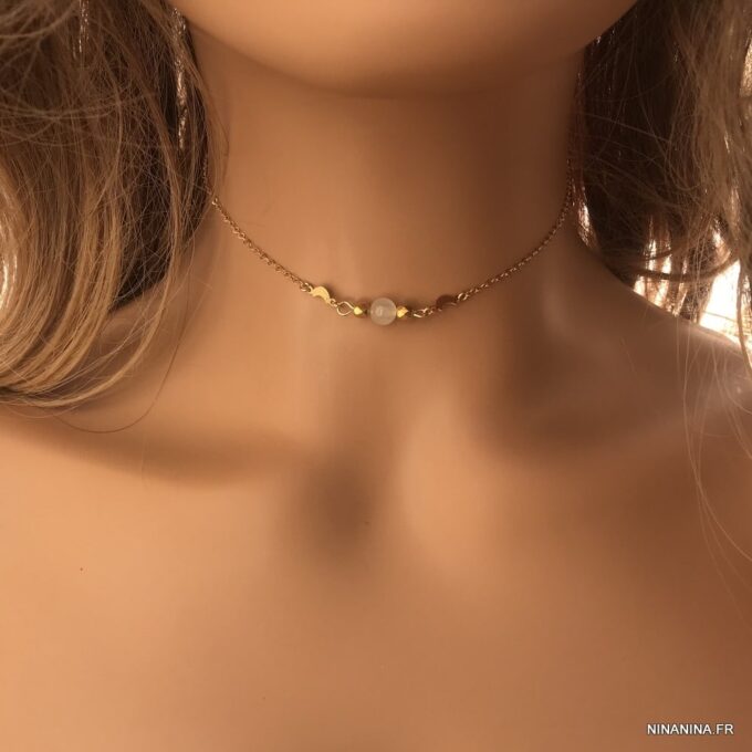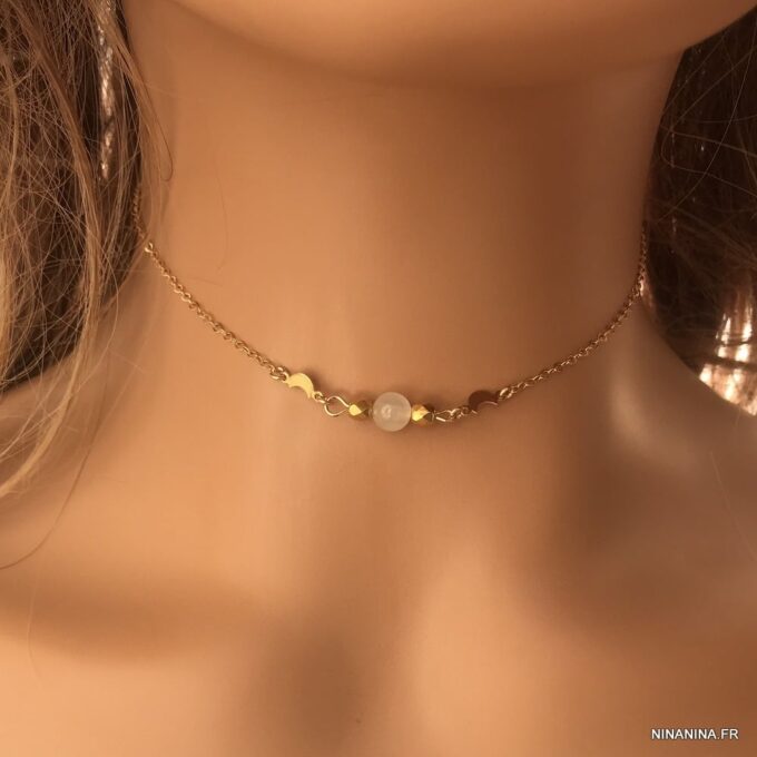Portez ce joli Collier ras de cou pierre de lune seul pour un look minimaliste ou en superposition avec d’autres colliers Ninanina