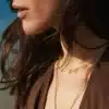 • Chaîne fine dorée, longueur idéale pour un effet sautoir
