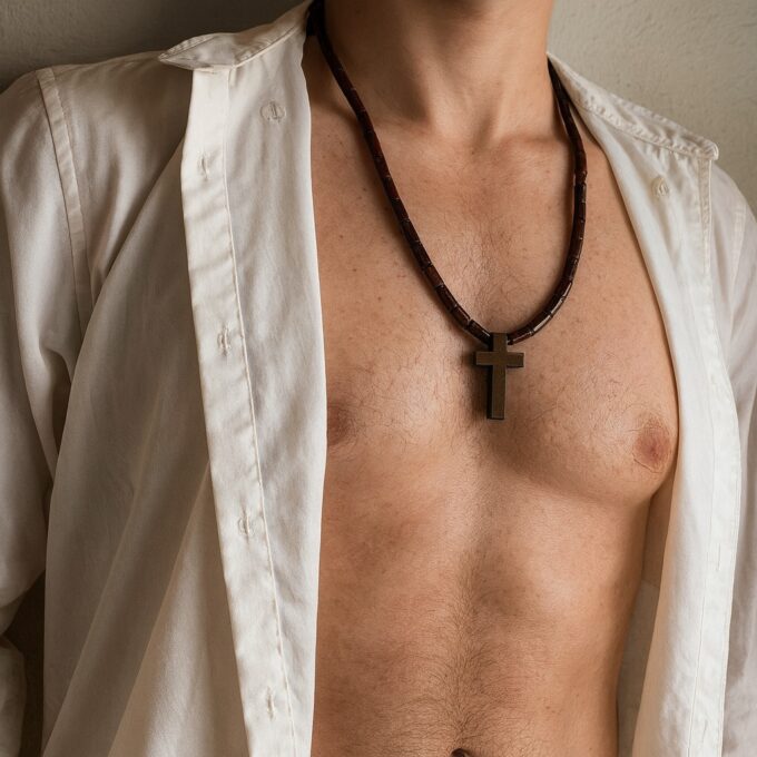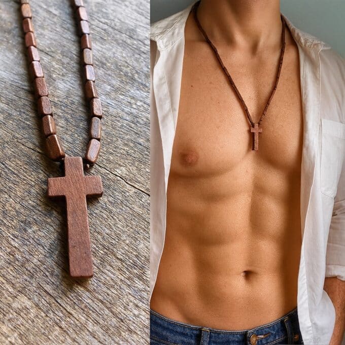 Ce collier croix en bois pour homme allie simplicité, symbolisme et élégance naturelle. Composé de perles cylindriques marron soigneusement polies et d’un pendentif croix chrétienne en bois massif, ce chapelet revisité offre un style authentique et masculin, parfait à porter au quotidien ou lors de moments spirituels.