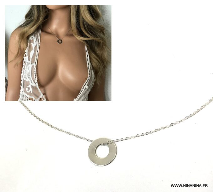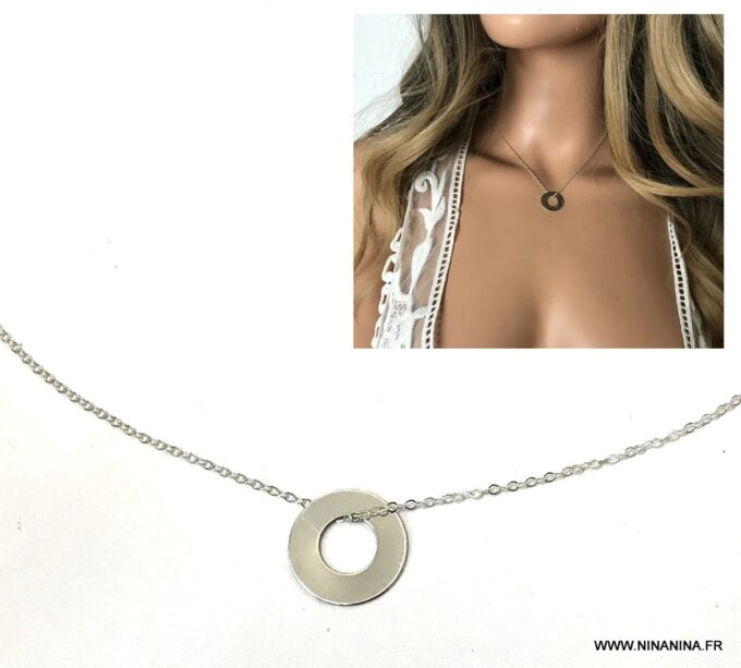 Collier cible femme chaine Argent 925 massif composé d’un anneau en argent 925 monté sur une chaînette (1mm de diamètre) en argent 925.