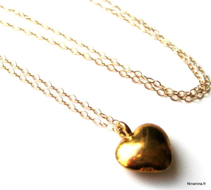 Collier Coeur Plaqué Or Sur Argent 925 massif Chainette Or Laminé
