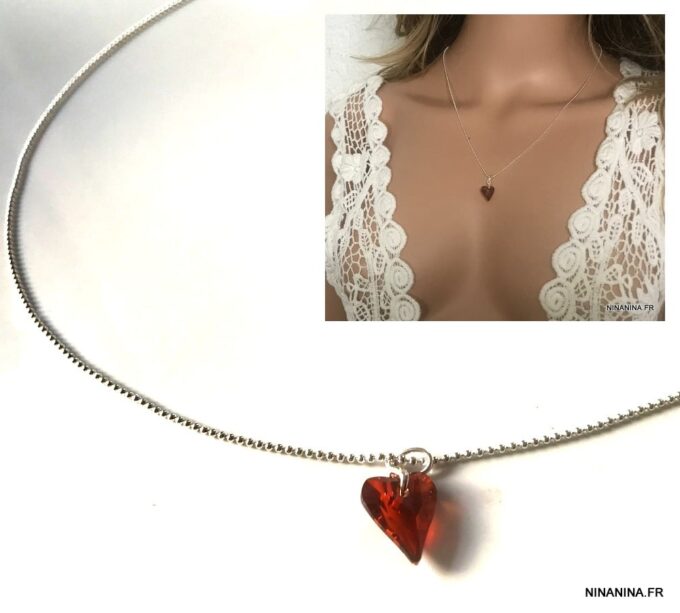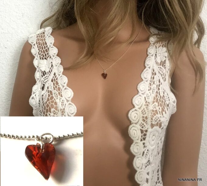 Un Collier Swarovski coeur rouge de Fabrication française
