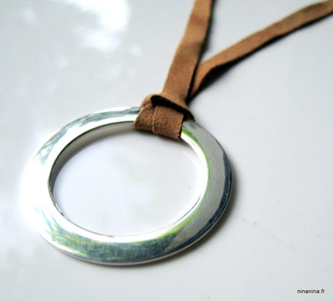 Soyez le premier à laisser votre avis sur “Collier anneau Argent plaqué lacet daim”