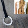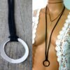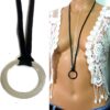 Collier anneau Argent plaqué lacet daim
