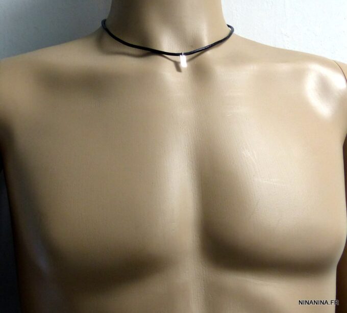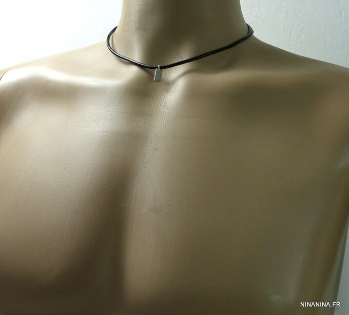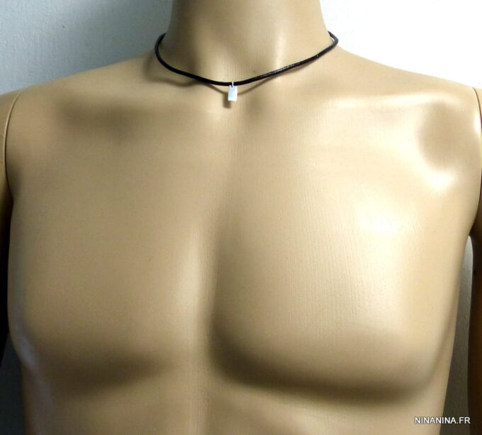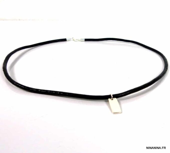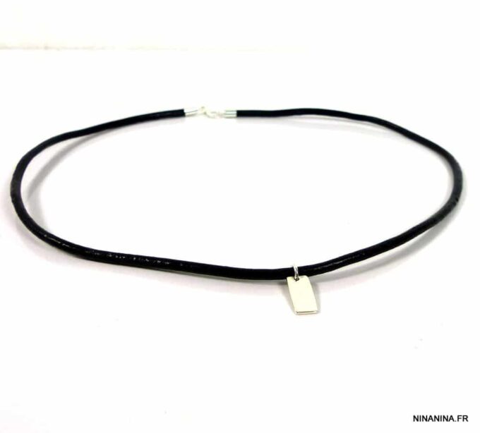 Collier homme cordon cuir Argent 925 minimaliste composé d’un pendentif rectangulaire en argent 925 monté sur cordon de cuir noir (3 mm de diamètre).