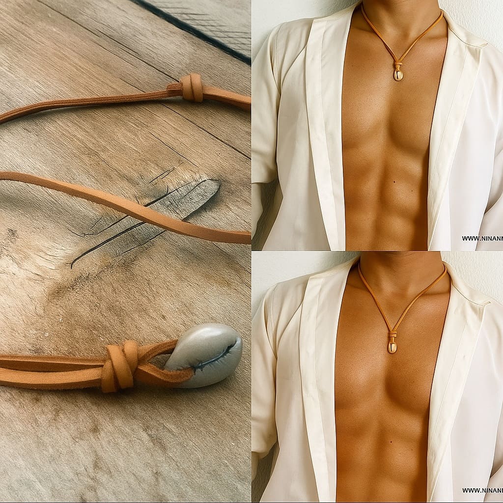 Le collier nœud coulissant coquillage homme en cuir naturel et cauri véritable est bien plus qu’un simple accessoire : c’est un bijou artisanal chargé d’histoire et de sens.